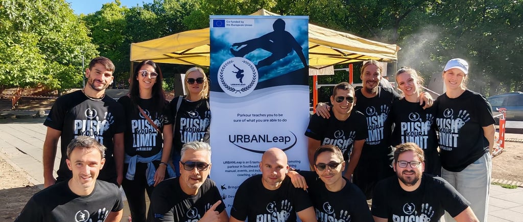 The weekend also offered a great chance to attend the Balkan Open, observe competitive parkour in action, and connect with local athletes and organisations. As part of the project’s visibility efforts, the team also shared the newly designed URBANLeap T-shirts, strengthening the visual identity of the initiative.